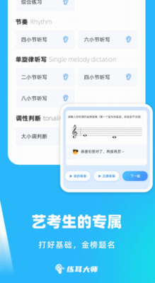 • 艺考生专属的模拟考试系统,整合历年音乐院校真题库