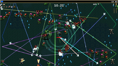 游戏内七大基础武器各具特色,鞭子具备吸血特性适合近战续航,十字架拥有自动索敌功能可有效清理漏网之敌,火魔杖的随机弹道在搭配穿透效果后能造成区域性压制。特别需要注意的是进化系统——当武器升至9级并满足特定被动条件时,通过宝箱可激活终极形态。如魔杖与冷却缩减道具结合后将实现无CD连发,成为清场利器。