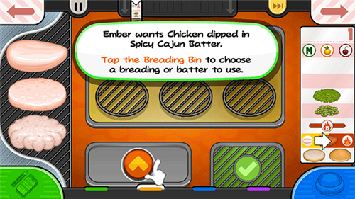 1、创新烹饪系统:从原料预处理到成品装盘,玩家需精准控制油炸温度与配料比例。特殊的三明治叠放机制要求玩家记忆超过20种食材组合方式,不同节庆季更会更新限定配方。