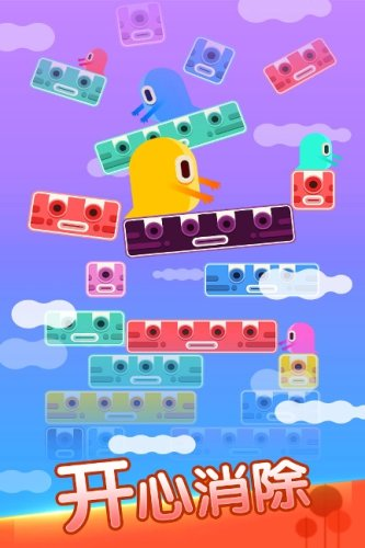 游戏采用三维立体式消除机制,玩家通过滑动屏幕旋转方块阵列,将同色方块组成特定形状即可触发连锁消除。创新加入的「时空隧道」模式允许玩家通过倾斜设备改变重力方向,这种突破性的交互设计为传统消除玩法注入全新活力。