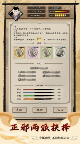 2、正邪双线剧情发展:加入少林、武当等名门正派或神秘教派,不同选择将触发截然不同的人生轨迹
