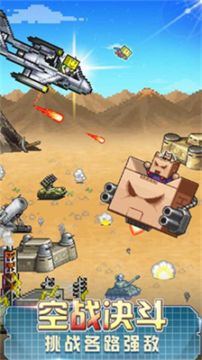 游戏采用极简操作模式,通过触屏即可完成飞行控制与战斗指令。像素风格的美术设计在保留复古韵味的同时,运用动态光影技术让场景更具层次感。玩家可解锁数十种机型改装方案,通过搭配不同属性的引擎、武器模块,打造专属空中战队。