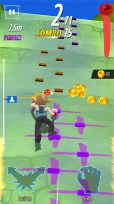 游戏采用真实物理引擎打造岩壁触点系统,每块凸起岩石都经过力学模拟设计。创新引入动态天气系统,雨雪天气会改变岩壁摩擦系数,晴天模式则需注意阳光眩目效果。多人竞技模式支持3-5人实时对战,全球玩家排行榜每日更新。特色训练营地提供12种专项技巧课程,从基础三点支撑到高阶动态跳跃应有尽有。