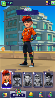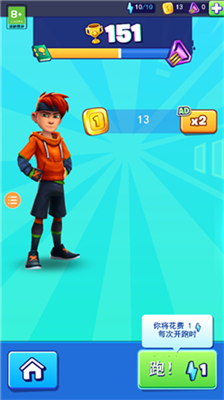 2、动态角色成长系统,每位角色携带专属技能树,通过资源累积激活特殊奔跑效果