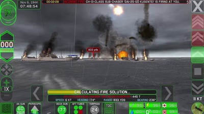 游戏设置三级难度梯度,从新手到资深指挥官都能找到适合自己的挑战模式。玩家可通过望远镜系统进行敌情侦查,结合鱼雷弹道计算机制,实现精准战术打击。独特的舰船改装系统允许自由搭配武器配置,每场战役后可通过战利品强化潜艇性能。