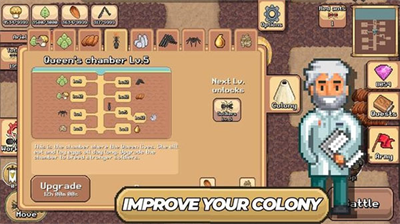 蚂蚁王国自由经营像素手游是一款以昆虫生态为背景的角色扮演游戏,采用俯视视角的像素画风展现微观世界。玩家将扮演工蚁成员,通过采集物资、扩建巢穴、抵御天敌等多元玩法,体验昆虫社会的完整生态链。游戏最新版本已集成便捷功能面板,为探索过程提供更多便利。