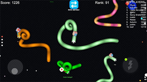 游戏打破传统大体积生物压制规则,小体型玩家可通过灵活走位实现逆袭。当其他玩家的蛇头触碰到己方身体部位时,可将其转化为能量碎片。这种攻防转换机制既考验反应速度,又需要预判对手行动轨迹。