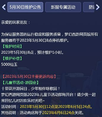 所有玩家维护结束后可通过邮件领取5000仙玉补偿