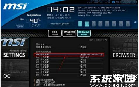 5、在参数设置目录中选取启动优先级菜单,通过回车键确认进入次级操作界面。
