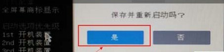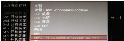 8、返回上级界面验证配置结果,首启动项右侧应显示USB设备标识,表明设置已生效。