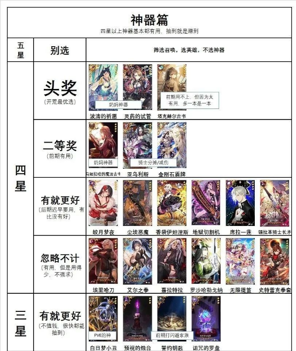 召唤池包含12个五星英雄与8个五星神器,配合丰富的四星单位构成完整体系。通过数据对比可见,部分四星角色如「塔玛林尔」具备超越常规五星的辅助能力,这种跨星级强度差异需要在选择时重点考量。