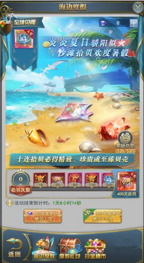 1、活动期间系统开放特殊道具兑换通道,玩家可通过消耗拾贝券或使用钻石兑换龙芝叶进行探索。每次拾贝操作均有机会获得四种品质的贝壳奖励:普通贝壳(基础资源)、精致贝壳(中级素材)、珍贵贝壳(稀有道具)以及至臻贝壳(限定物品)。建议每日登录领取免费拾贝次数,合理规划资源使用。
