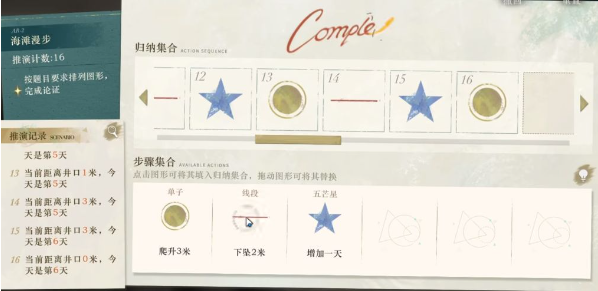 采用循环组合模式:单子符号起手后,按线段→五芒星的顺序重复操作五次,最后以单子符号收尾完成解谜。注意观察场景中潮汐变化节奏,当浪花退至礁石边缘时进行符号激活可获得额外加成。