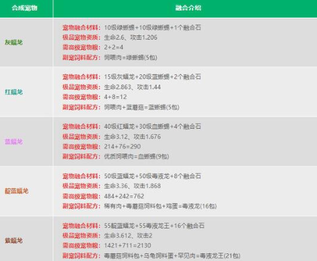 初始形态灰蝠龙需两只10级绿蜥蜴配合融合石激活,后续每阶进化均需前代高阶形态作为基底。红蝠龙合成需将15级灰蝠龙与20级蓝蜥蜴组合,蓝蝠龙则需40级红蝠龙融合30级血蜥蜴。顶级紫蝠龙要求55级靛蓝蝠龙与毒液龙王共同培育,消耗16枚融合石完成最终蜕变。