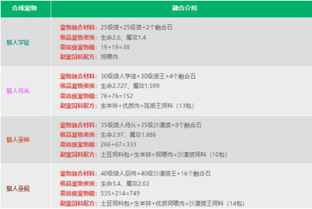 狼族进化链包含四个关键节点:由双狼合成的学徒形态起步,逐步融入狼王与沙漠狼基因。巫祝作为终极形态,需40级巫师与沙漠狼王协同进化,该阶段消耗的融合石数量达16枚,可激活特殊群体增益技能。