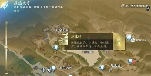 2、精确导航至宋辽边境汴京城的【542,258】坐标点。该区域存在特殊地形标识,玩家接近目标点时会自动触发系统提示,此时界面将显示奇遇任务激活成功的特效动画。