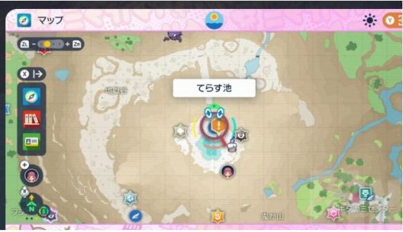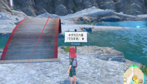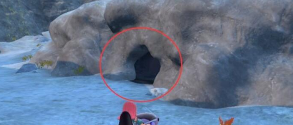 训练师需首先抵达北上乡东北区域的镜池传送点,该水域位于地图标注的晶蓝湖区域。从传送锚点向东南方位移动时,注意观察地形特征——在生长着三棵巨型杉木的缓坡后方,隐藏着关键的洞穴入口。