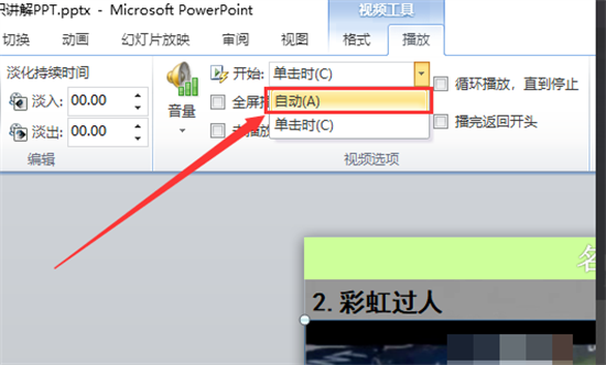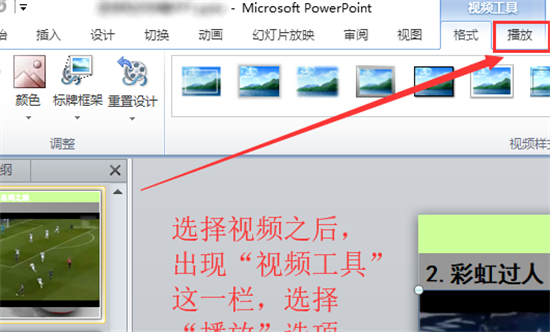 3、激活视频工具操作面板。当选定视频对象后,功能区将动态显示"视频工具"模块,切换至"播放"选项卡可进行深度参数配置。