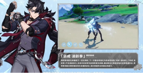 作为冰元素法器使用者,莱欧斯利凭借其独特的战斗模式成为版本焦点。该角色定位为站场主C,其战斗模式围绕普通攻击与重击展开,每次攻击均附带冰元素附着效果。元素战技「凛霜领域」激活后,将显著提升普攻伤害系数,同时启动生命值消耗机制。