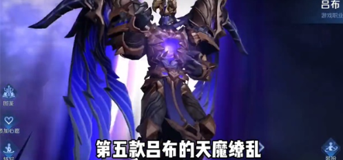 暗黑风格史诗皮肤「天魔缭乱」经过模型精度升级后重归战场,吕布方天画戟燃烧着幽蓝火焰,大招范围内的地面会呈现破碎的虚空裂痕特效,压迫感十足。