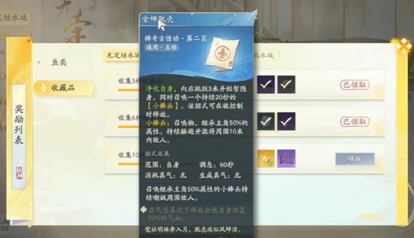 解锁条件说明:需在无定坊指定水域完成钓鱼挑战,集齐六件特殊藏品方可激活该技能。