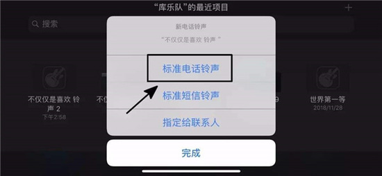 5.在库乐队项目界面长按生成文件,通过共享菜单选择电话铃声导出通道。注意保持网络连接畅通以确保编码转换顺利完成