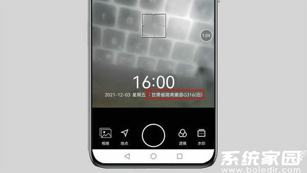 5、点选水印模板中的定位图标,应用将调取设备的地理位置服务模块,展示当前GPS获取的坐标信息。