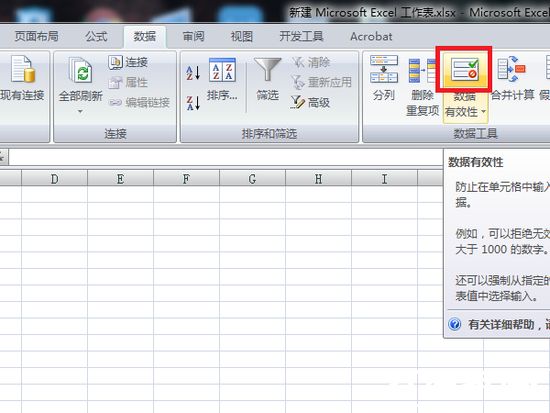 2、定位至软件顶部导航栏,选择「数据」功能选项卡。在数据工具组中找到「数据验证」控制项(部分版本显示为"数据有效性"),点击该功能图标进入设置界面。