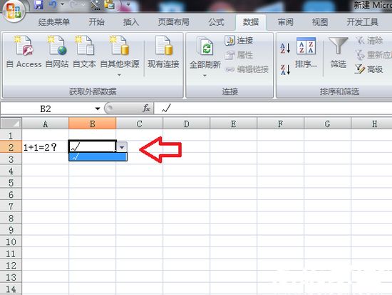5、返回工作表界面后,可通过点击设置完成的单元格查看效果。下拉菜单中将显示预设的√符号,选中即可完成勾选操作。建议通过复制格式功能批量应用到同类单元格,提升设置效率。