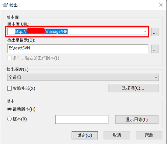 选择SVN检出功能后,在版本库URL栏需输入完整的SVN路径。首次连接建议勾选"存储认证数据"避免重复验证,深度选项保持默认即可完成全目录下载。