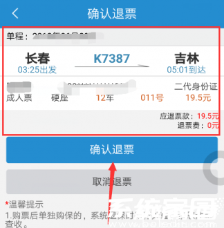进入订单详情页后,仔细核对乘车人信息与车次详情。确认需办理退票业务后,点击页面下方醒目的「退票」功能按钮。系统将弹出退票规则提示框,包含手续费计算标准及退款到账周期说明。