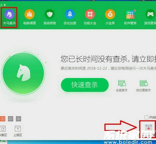 2、进入核心防护模块:在程序主面板顶部导航栏选择「木马查杀」功能单元,该区域集成了多层次的安全检测方案。通过侧边栏的快捷入口可直达系统急救模块。