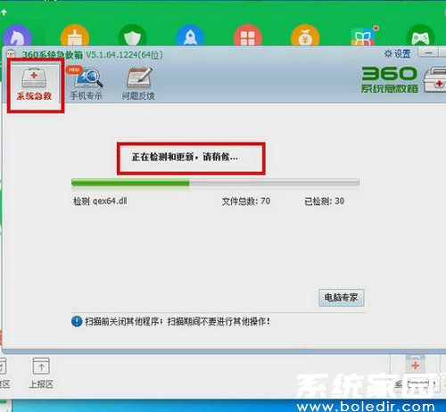 3、启动急救预处理:点击「系统急救」功能按钮后,程序将自动执行初始化操作。此过程包含驱动加载、病毒库验证、系统环境检测等关键步骤,确保后续扫描的准确性和有效性。