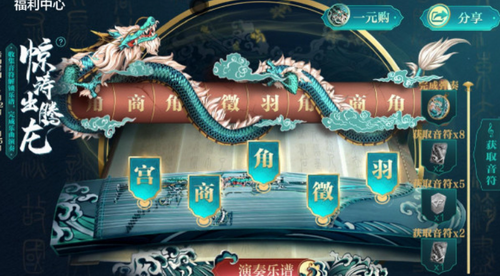 正确演奏顺序为:角商角徽羽角商角徽。该提示线索通过活动界面中的龙形图腾动态展示,玩家可仔细观察龙身纹路变化获取演奏灵感。建议在演奏前先进行多次顺序记忆练习,避免演奏中断导致进度重置。