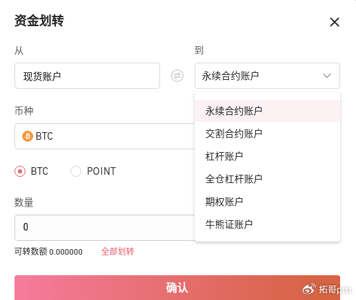 在弹窗界面需特别注意账户类型的选择,永续合约交易需指定划转至"衍生品账户"。系统支持BTC、USDT等主流币种的自由划转,划转前请仔细核对币种类型与数量,建议优先使用稳定币进行风险对冲。