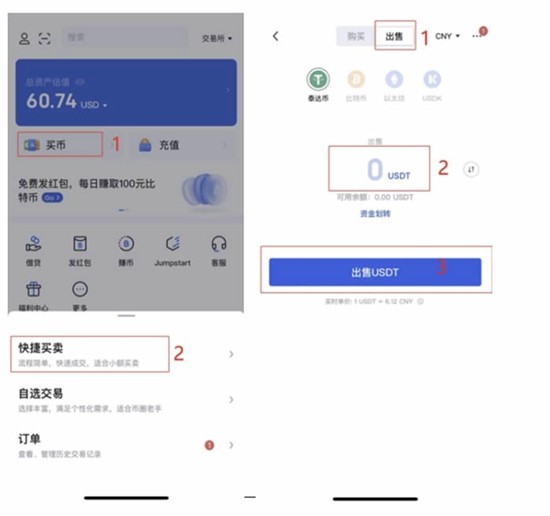 在移动设备启动oe交易所应用程序,依次点击底部导航栏的【交易】功能模块,选择【快捷交易】服务界面。切换至【卖出】选项后,在金额输入框填写需售出的USDT数量,系统将自动计算预估到账金额,确认无误后点击蓝色确认按钮进入订单创建阶段。