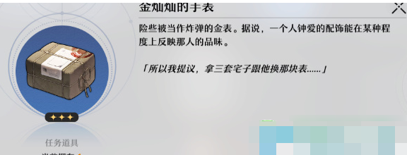 2、成功解除危机后将获取稀有时装配件「鎏金时计」。这件闪耀着神秘光芒的怀表需送往行政区中心广场,寻找NPC华劳斯进行物品交接。此处对话选项需注意选择「物归原主」分支,完成诚信交付后系统将发放5000信用点基础奖励。