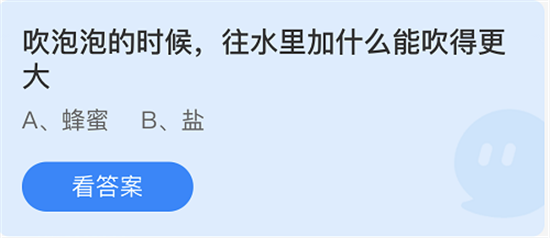 第二题涉及生活科学知识:"吹泡泡时往水里加什么能吹得更大?"实验证明添加蜂蜜是提升泡泡稳定性的有效方法。当蜂蜜与水混合后,糖类物质能显著改变液体表面张力系数,形成更具延展性的薄膜。同时多糖分子的聚合作用可增强溶液粘度,使气泡壁在膨胀过程中保持结构完整性。