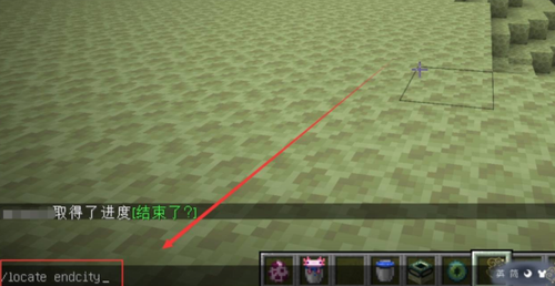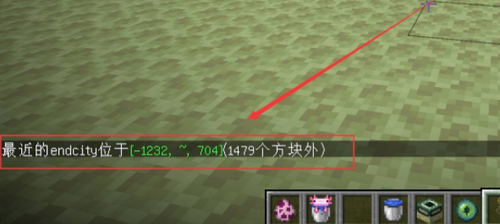 1、启动游戏后通过末地传送门进入末路之地,在聊天栏输入/locate endcity指令获取坐标数据。该指令将显示距离玩家最近的末地城方位坐标,建议及时记录坐标数值。