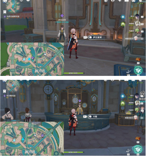 2. 分阶段完成铁匠铺与钟表店的关键对话:先向东前往底层与伊丝黛莱交流,再通过东北锚点进入钟表店寻找卡隆