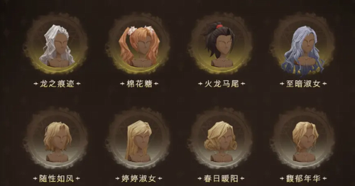 ②女性专属造型:「龙之痕迹」暗藏魔法符文、「棉花糖」营造甜美氛围、「火龙马尾」凸显干练气质、「至暗淑女」融合哥特元素、「随性如风」展现自然魅力、「婷婷淑女」诠释优雅格调、「春日暖意」洋溢清新气息、「馥郁年华」沉淀成熟韵味