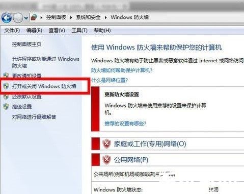 在防火墙主界面左侧导航栏选择"启用或关闭Windows防火墙"功能选项。针对家庭网络和公共网络两种使用场景,建议暂时关闭防护功能进行测试验证